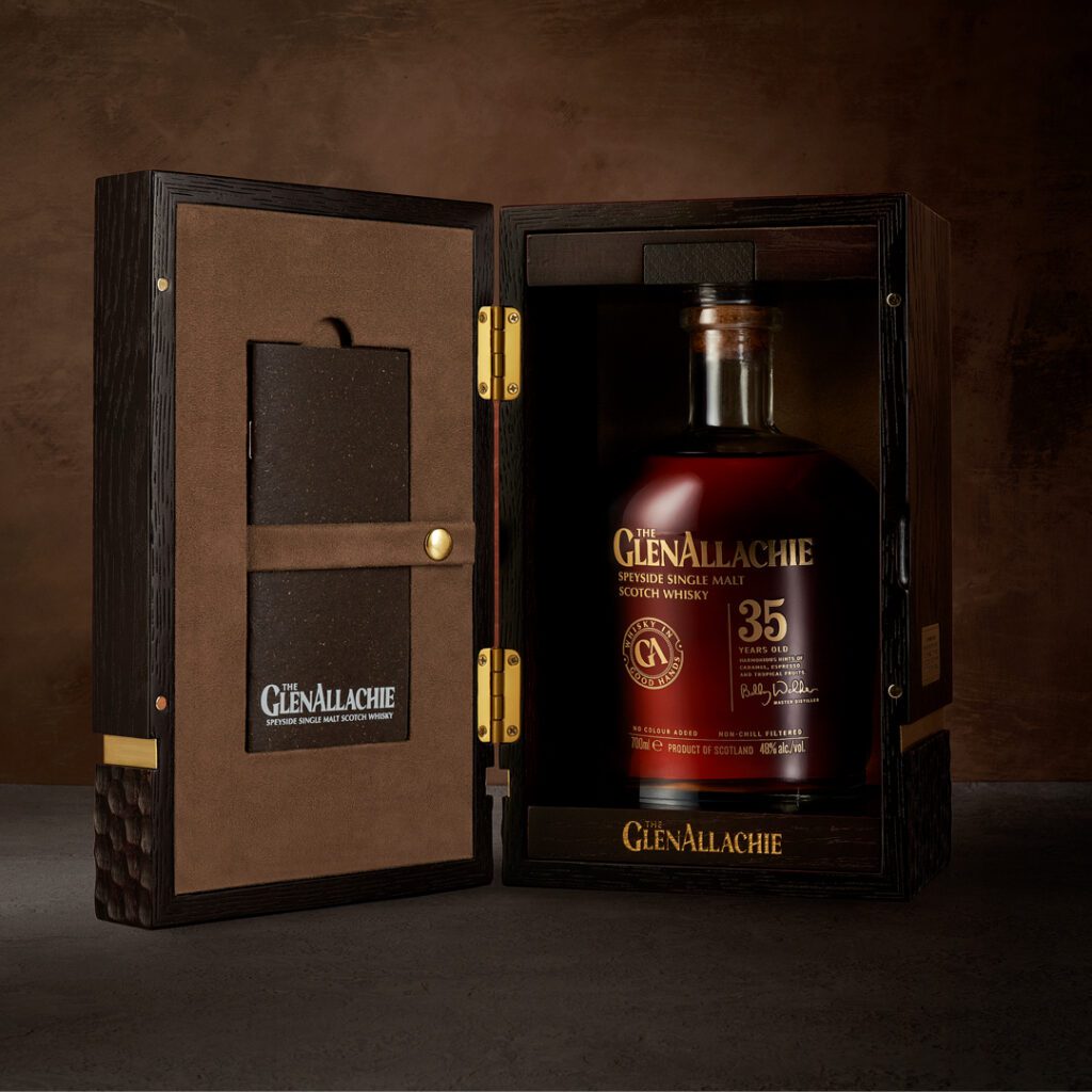 The GlenAllachie 35-year-old is their oldest core release to date. Taking the essence of the core brand, this elevated design included a lavish hand-carved oak box and a hand-written notebook from Billy Walker, the Master Distiller, to give a personal insight into his process which added an emotive surprise for the consumers.